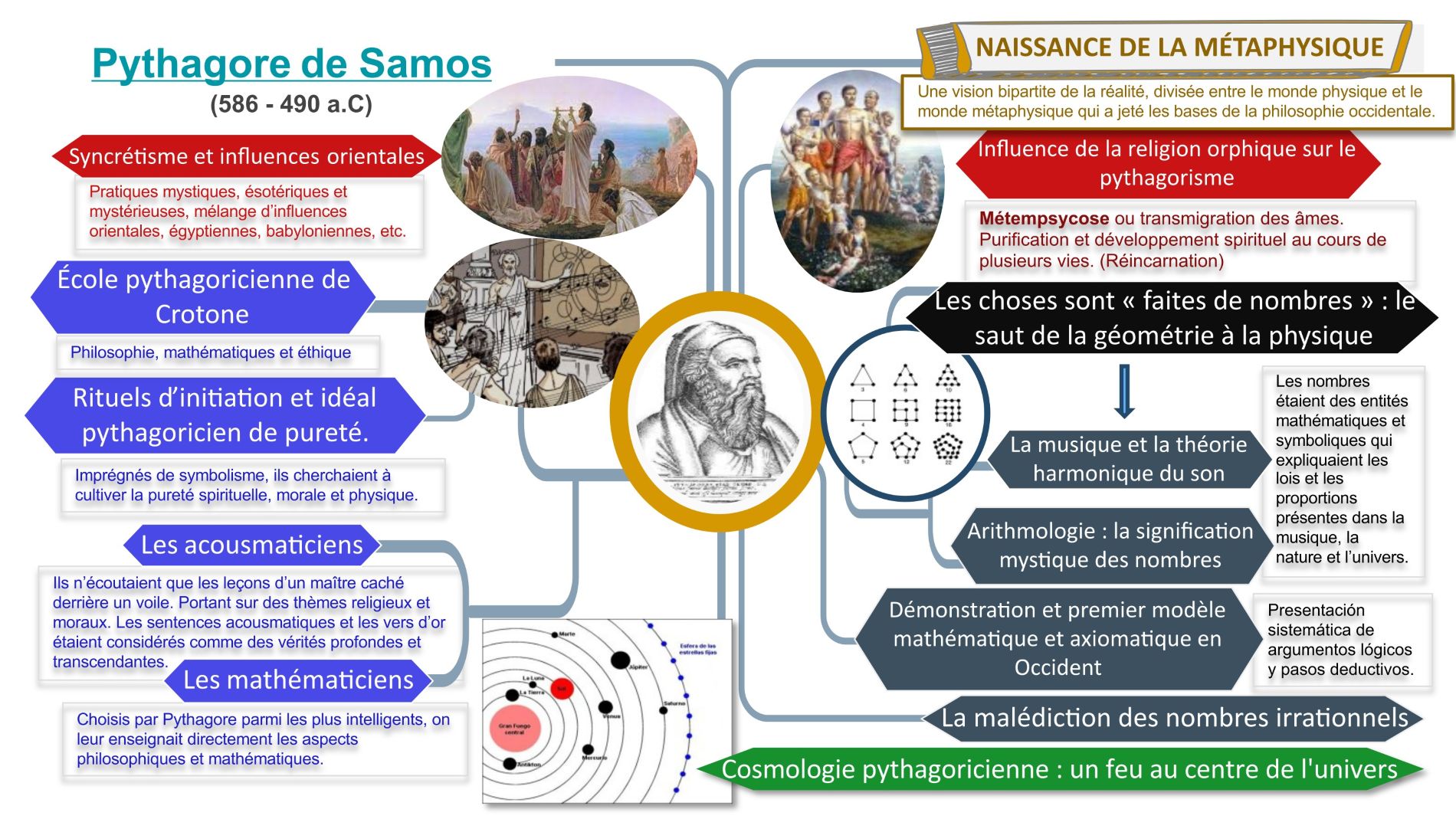 - Orphisme. Dans ce poème, on perçoit des influences de l’orphisme et du pythagorisme : la préexistence de l’âme, le péché, la chute de l’homme d’un état céleste, le pessimisme sur la vie humaine, la transmigration des âmes et des pratiques telles que l’abstention de certains aliments (haricots, laurier) et la condamnation des sacrifices animaux. Cependant, bien qu’il y ait des références à ces éléments, Empédocles semble davantage influencé par le pythagorisme que par l’orphisme, car certains aspects tels que l’homophagie et l’idée de rédemption sont absents.